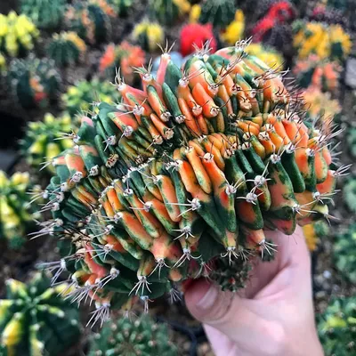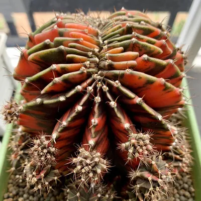 Кристатный (гребенчатый) кактус — это растение с аномалией роста, при которой конус нарастания превращается в линию или полосу. Пожалуйста, имейте в виду, что кристатность через семенное размножение проявляется очень редко.