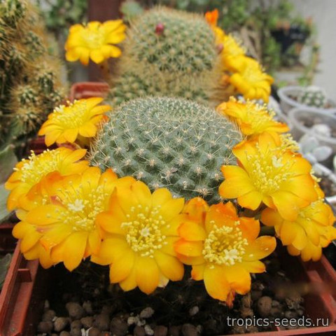Полив. Умеренный весной и летом, после просыхания грунта, подержите кактусы несколько дней в сухости. Самый опасный период - сезон дождей в средней полосе России с середины августа - осторожнее, грунт сохнет дольше, сокращайте полив, а ко времени холодной зимовки прекращайте полностью. Зимой практически не поливают, а если температура теплее, в пределах 18-14°С, полив довольно редкий и скупой, буквально чайной ложкой.