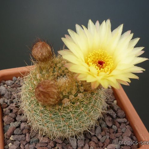 Пересадка. Почва - 1 часть дерновой, 1 часть листовой, 1 часть торфяной земли, 1 часть песка и кирпичная крошка. Для взрослых кактусов и старых дерновая почва составляет 2 части. Пересаживаются молодые растения ежегодно или через год, старые через год - два.