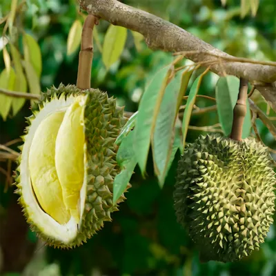 Дуриан – растение из семейства Мальвовые, популярно в южной части Азии. Растет в тропических лесах. В Европе и Америке стал известен как «самый вонючий фрукт». Считается полезным и вкусным коктейльным фруктом, но отталкивает неприятным запахом. Название образовано от слова, что в переводе означает «колючка», чем вполне соответствует внешнему виду.